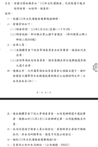 [最新消息] 115年全民運動會代表隊選手報名說明會